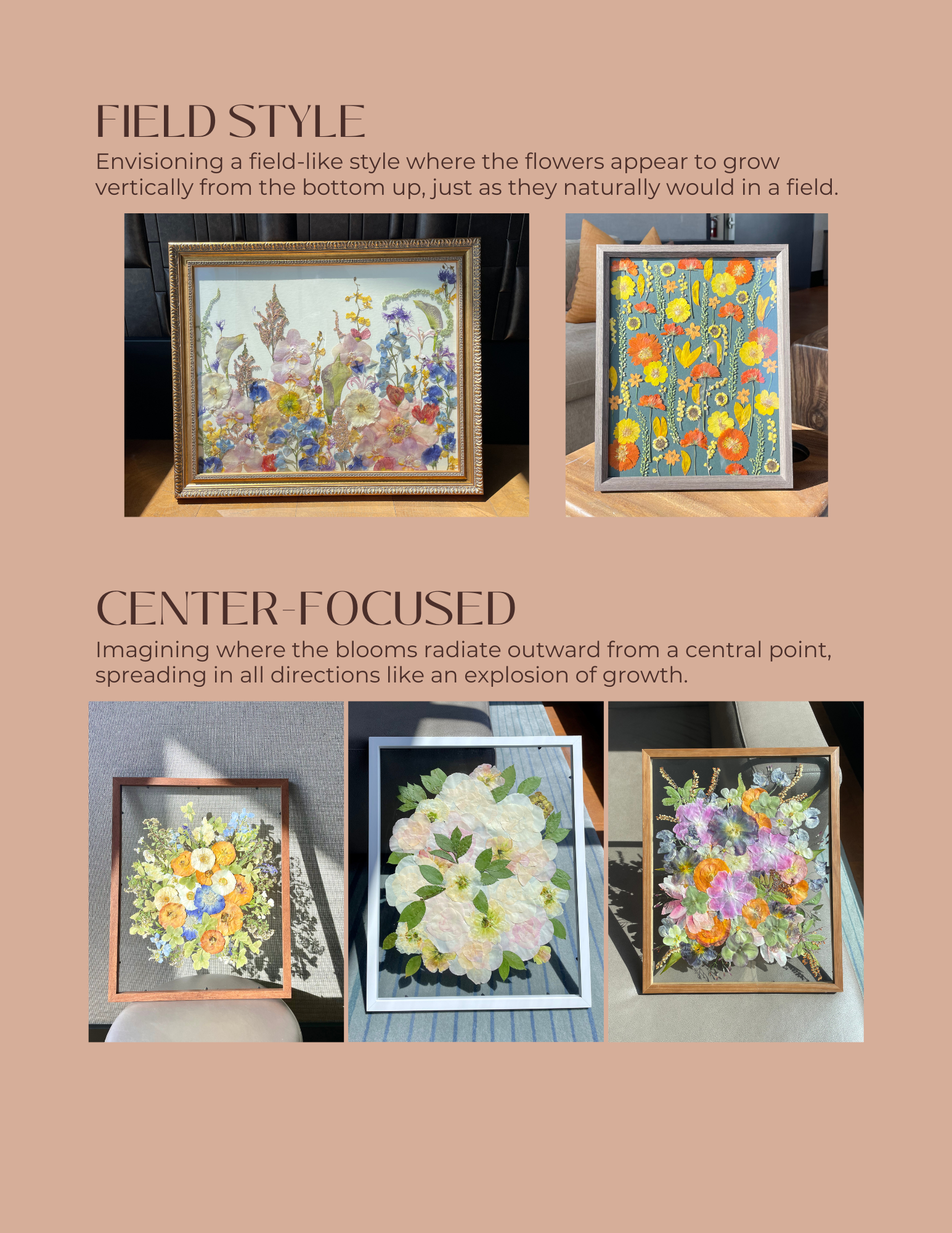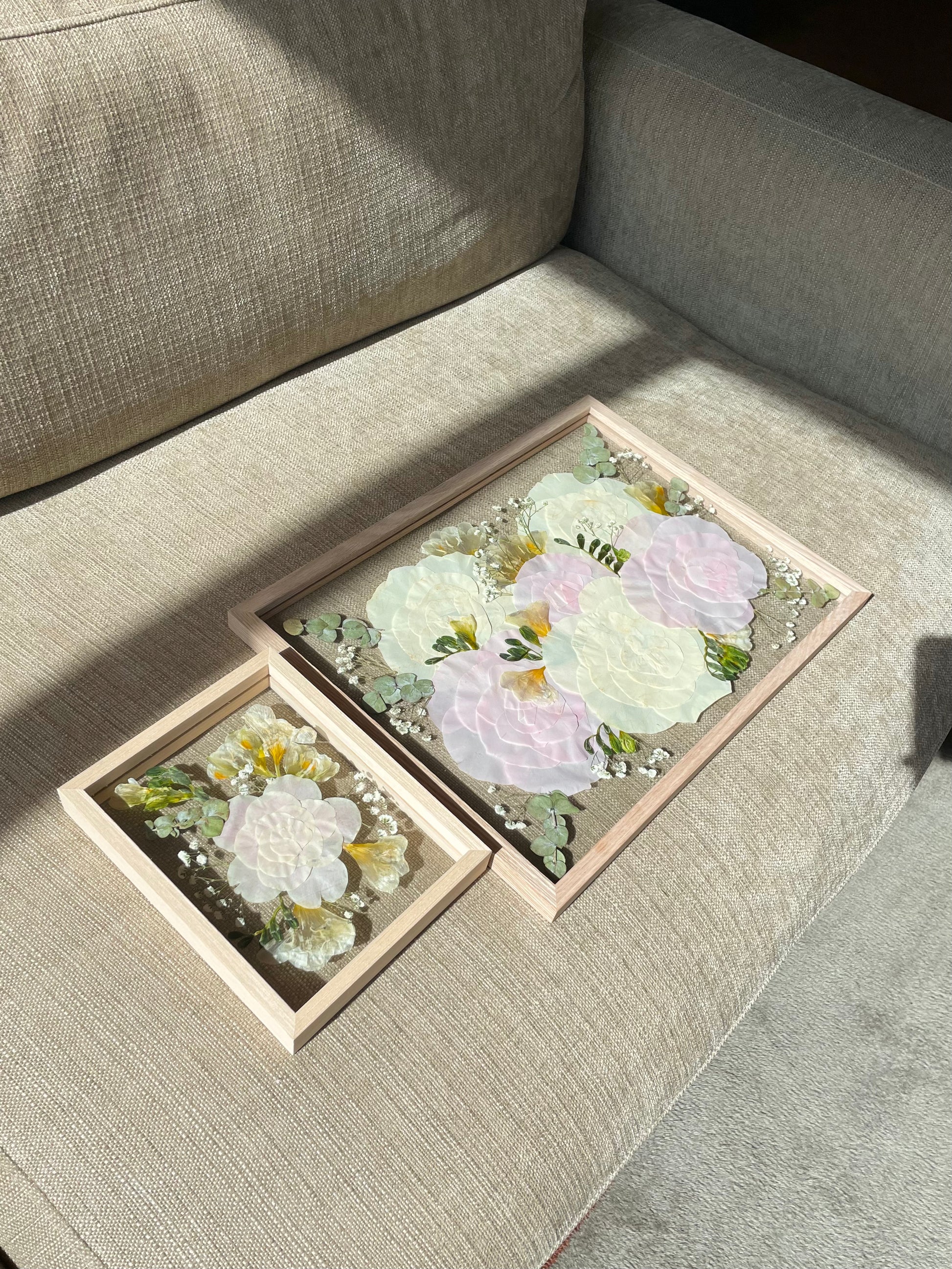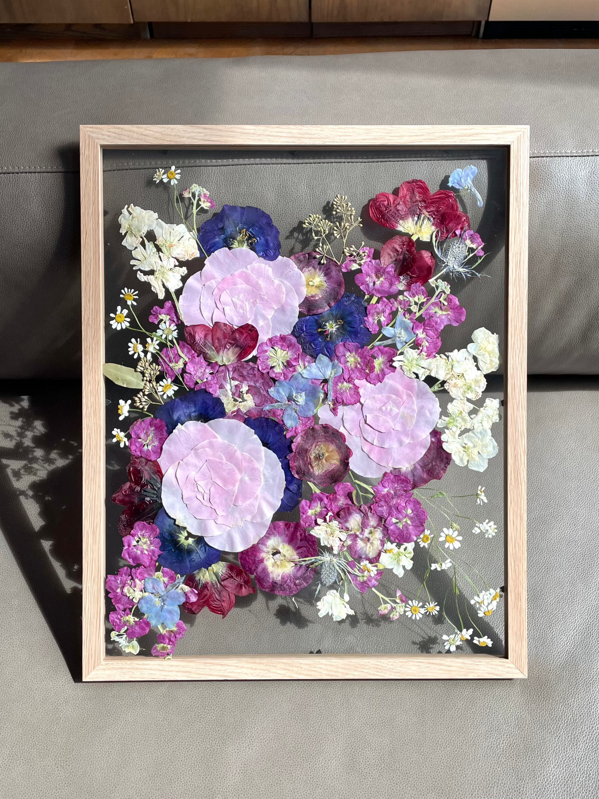 Some natural color changes may occur over time. We'll include care instructions to help you keep your frame looking its best. Please note that slight shifts in flower color can also happen during the preservation process, as part of nature’s chemistry.