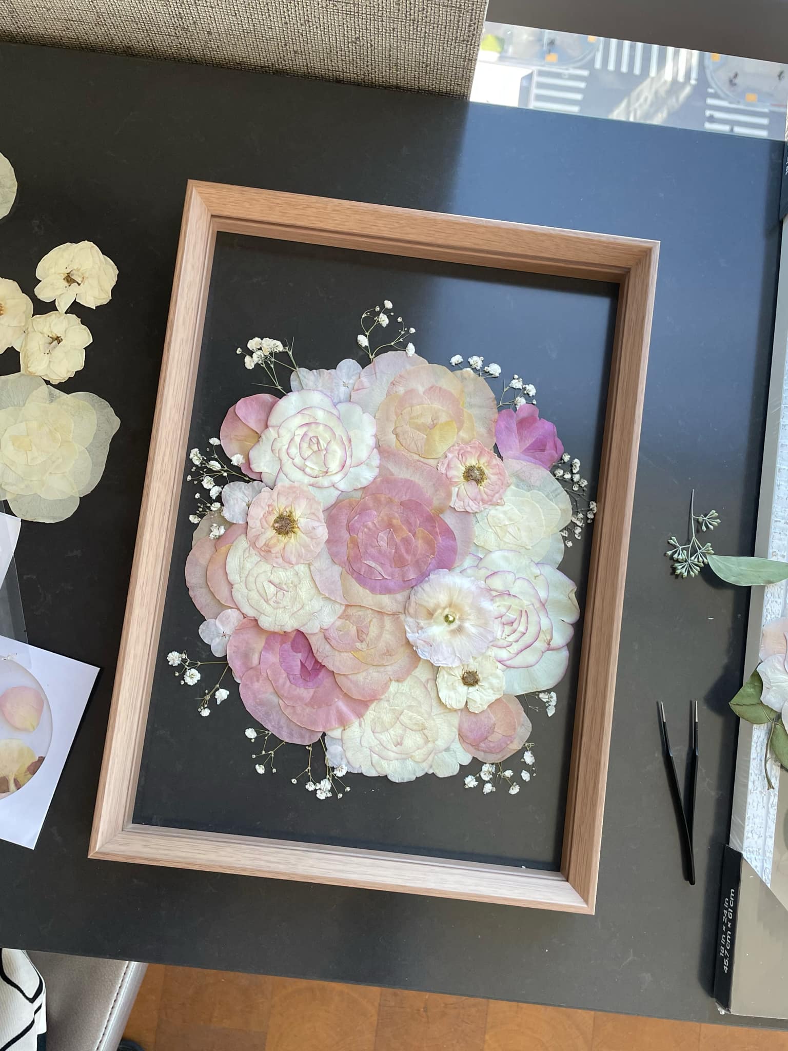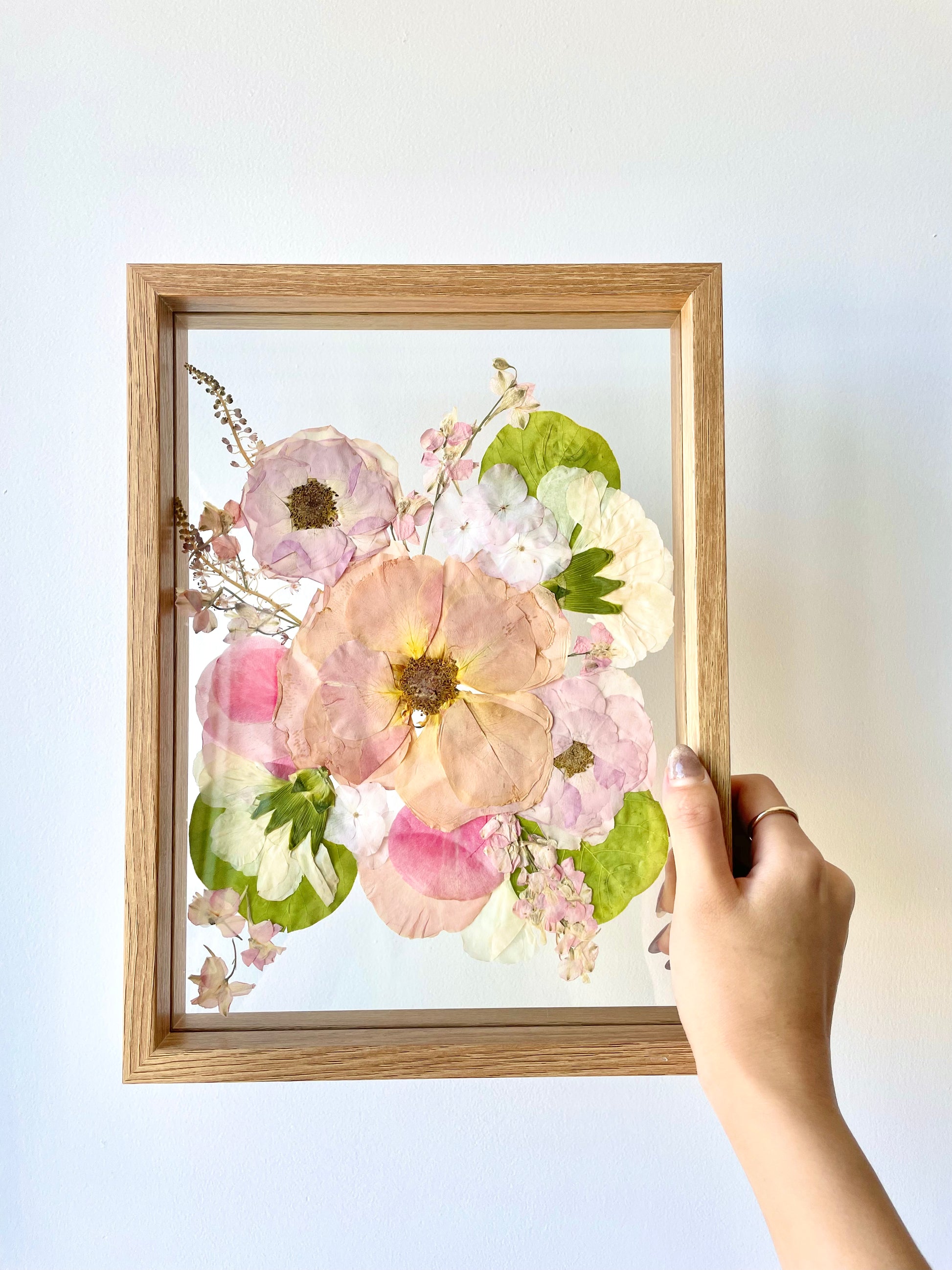 Our 16x20" size is the top favorite. Pressed Flower preservation is a stylish and timeless way to keep your precious memories. With expert flower preservation techniques, this option makes sure your special moments are preserved for a lifetime.